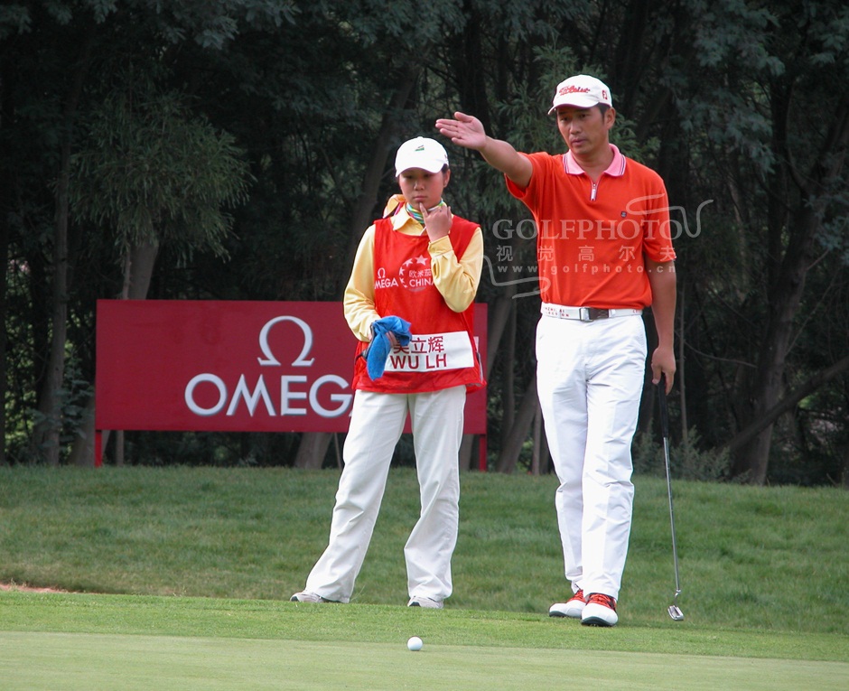 【golftime讯】欧米茄中国巡回赛昆明站于9月21日正式在昆明乡村高尔夫球俱乐部拉开战幕。本次比赛共有92名选手参赛。首轮比赛,李超以68杆-4的成绩排名首位;邓裕超以70杆-2的成绩排名第2;吴伟煌与谭国华以71杆-1的成绩排名第3。图为吴立辉在比赛中。