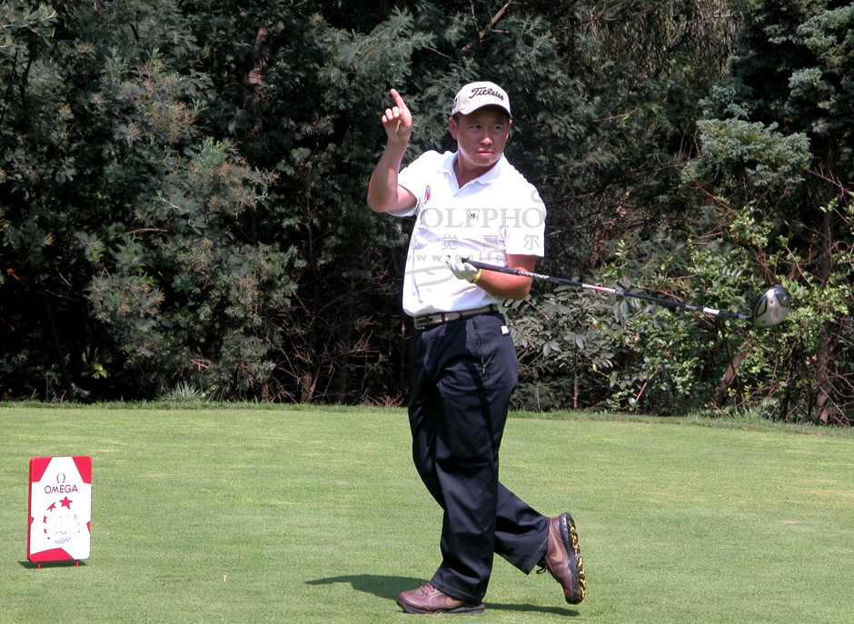 【golftime讯】欧米茄中国巡回赛昆明站于9月21日正式在昆明乡村高尔夫球俱乐部拉开战幕。本次比赛共有92名选手参赛。首轮比赛,李超以68杆-4的成绩排名首位;邓裕超以70杆-2的成绩排名第2;吴伟煌与谭国华以71杆-1的成绩排名第3。图为选手在比赛中。