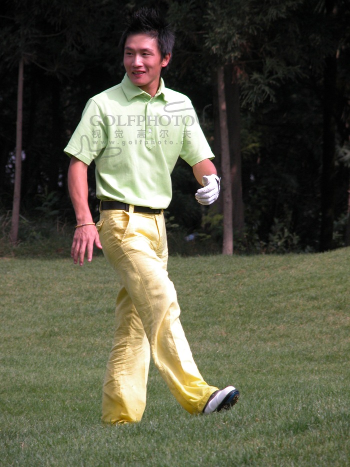 【golftime讯】欧米茄中国巡回赛昆明站9月22日在昆明乡村高尔夫俱乐部进行了第二轮的角逐。第二轮比赛,共有56名选手成功晋级。其中包括6名业余选手,国家队队员有5人成功晋级。第二轮李超以141杆-3的成绩仍排名首位。谭永宗以143杆-1的成绩排名第2。图为“时尚小子”徐秦。