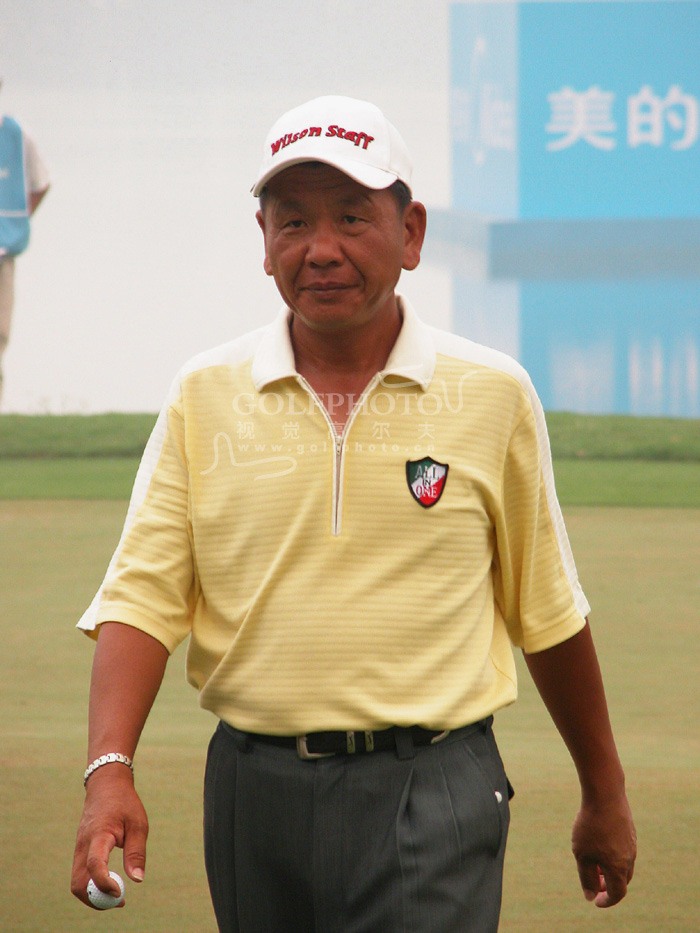 【golftime讯】总奖金168万元的“美的”中国男子职业精英赛于2006年10月20日在广东顺德君兰国际高尔夫俱乐部战罢第二轮。中国名将张连伟今天发挥出色,打出67杆-5的成绩,两轮的成绩为136杆-8排名升至第一位。两轮后共有60名选手成功晋级决赛轮的赛事,业余选手仅韩韧发挥稳定晋级;赞助商特邀的9位港台选手都成功晋级。图为中国台北老将汪德昌昂首阔步。