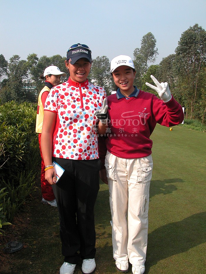【golftime讯】首届佛度亚洲杯总决赛2月4日进入第二轮的比赛,竞争日趋激烈,随着佛度先生莅临观澜湖高尔夫球会,并亲自前往佛度球场巡视,赛事进入高潮。首轮比赛表现突出的选手延续了出色的竞技状态,遥遥领先的中国台北女选手谢王禹玲(Yu-Ling Hsieh),次轮射下5只小鸟,以两轮137杆的总成绩在所有选手中排名第一;昨天排在男选手中第一的泰国球员Nakarin Ratanakul次轮成绩差强人意,平了标准杆,不过仍然以139杆的总成绩在男子选手中名列首位;大陆选手表现仍有一定差距,目前成绩最好的是排名第22位、年仅12岁的女选手王欣,落后第一名有18杆之多。图为王欣与同组选手。(摄影:golftime·阿沛)