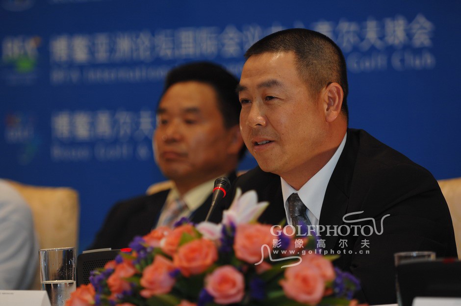 承办球场博鳌亚洲论坛国际会议中心高尔夫球会总经理刘炳和回答媒体提问