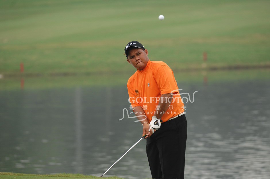 图为泰国选手查布蔡·尼亚特在首轮比赛中。尼亚特首轮战况为二鸟三博基,成绩为72杆。