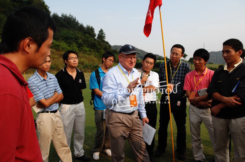 图为R&A规则委员会主席阿兰霍米斯在给学员授课。