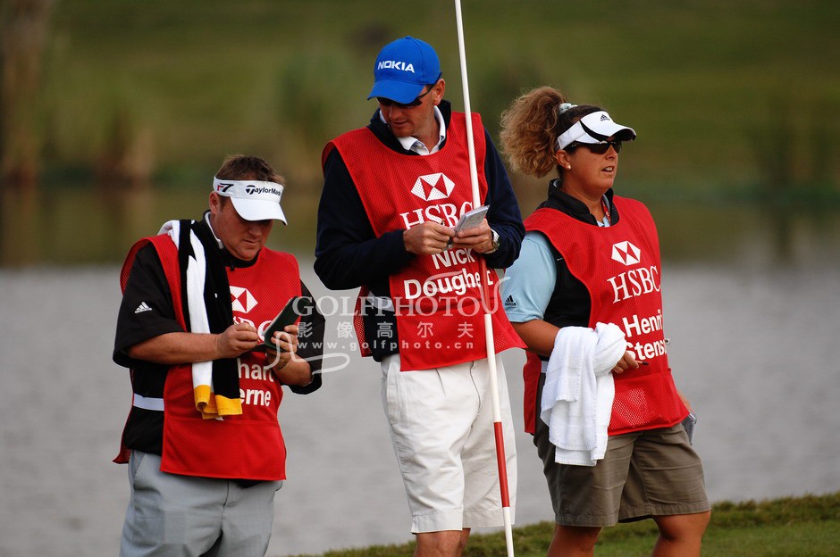 【golftime讯】“2007汇丰冠军赛”于2007年11月10日在上海佘山国际高尔夫球俱乐部进入第三轮的角逐。两轮战罢,共有67人晋级今明两天的决赛,其中包括中国内地的张连伟和梁文冲。 图为大牌球星的球童们。(报道:golftime·君玲/摄影:golfphoto·老高)