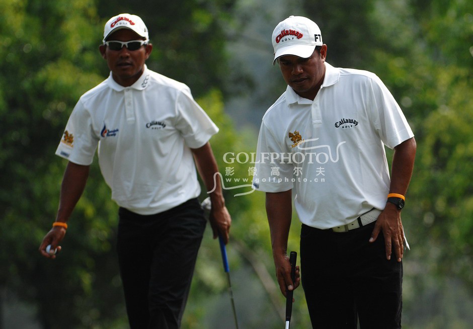 图为泰国队贾迪(左)和马山在比赛中。(报道:golftime·君玲/摄影:golfphoto·老高)