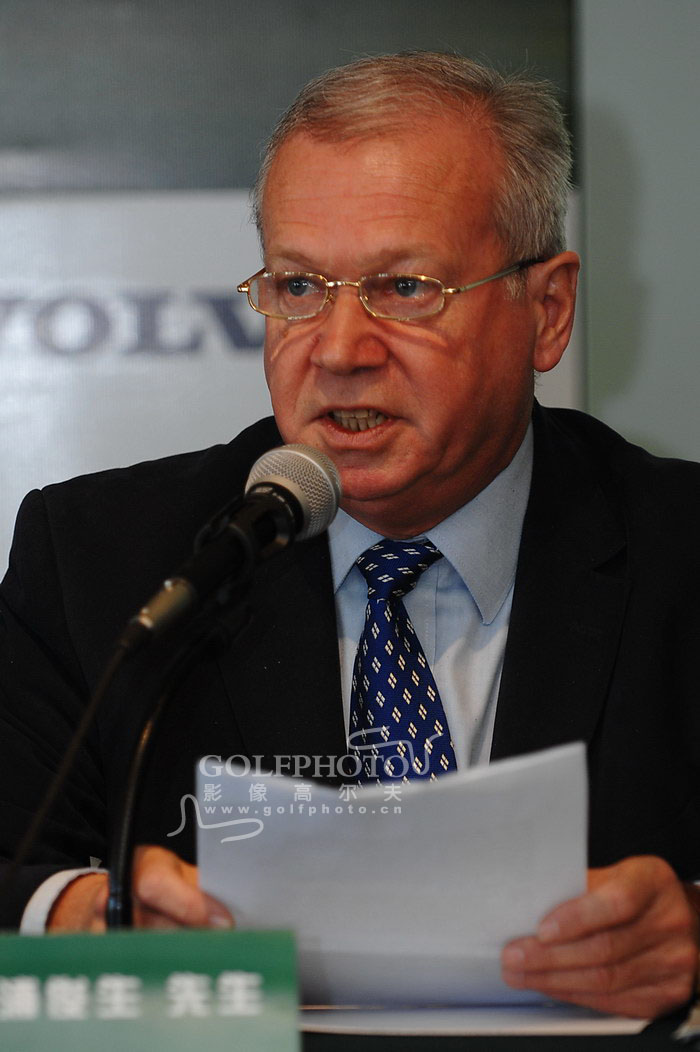 图为VOLVO中国公开赛执行总监浦俊生主持发布会。 (报道/摄影:golfphoto·老高)